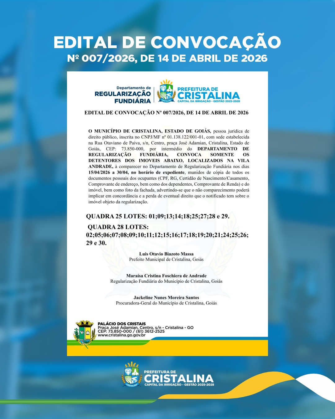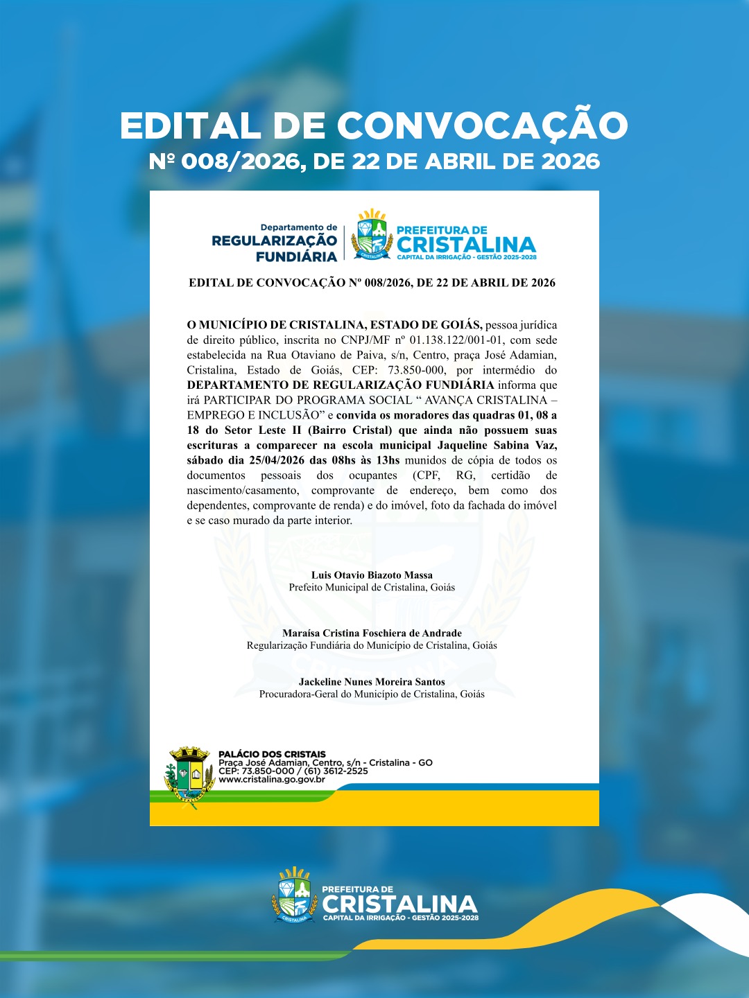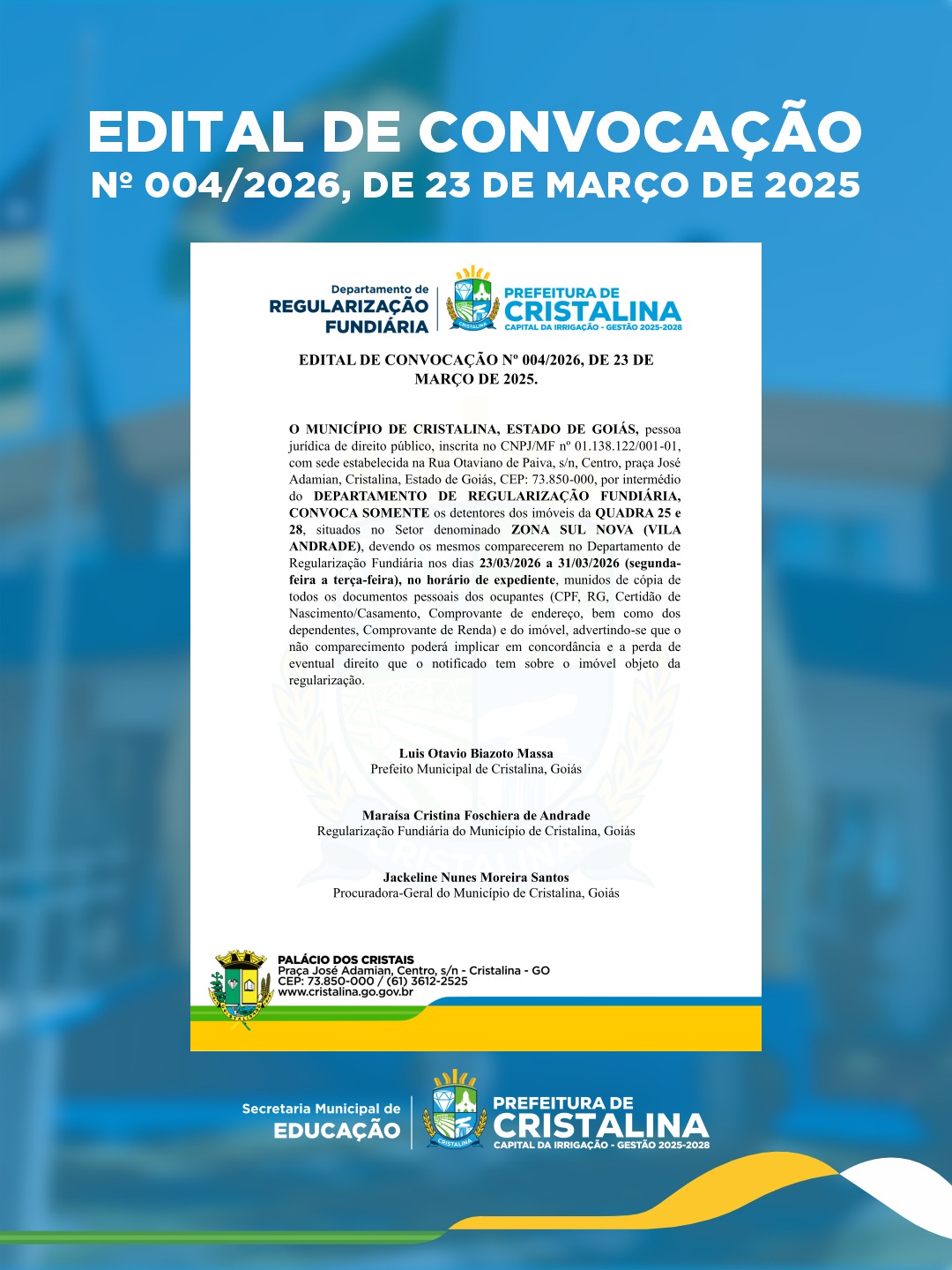 Lei nº 2.518/2021 – Art. 4º Compete ao Conselho: I – Assegurar a participação da sociedade civil no aperfeiçoamento da Educação Municipal; II – Zelar pela qualidade pedagógica e social da Educação no SME; III- Zelar pelo cumprimento da legislação vigente, no SEMEC; IV – subsidiar a elaboração e acompanhar a execução e a avaliação do Plano Municipal de Educação de Cristalina.